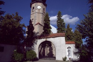 widok na kaplicę i cmentarz