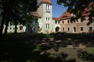 widok od strony dziedzińca, po prawej widoczny klasztor