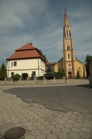 widok ogólny plebanii i kościoła