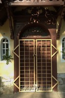 rzeźbione w drewnie zadaszenie portalu