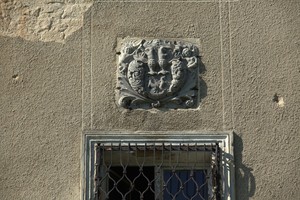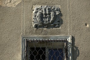 kartusz herbowy nad wejściem głównym z herbami Brauchitsch i Nimptsch z inicjałami F.V.B. i A.H.G.V.N.