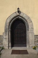 portal południowy z kartuszami herbowymi w nadprożu